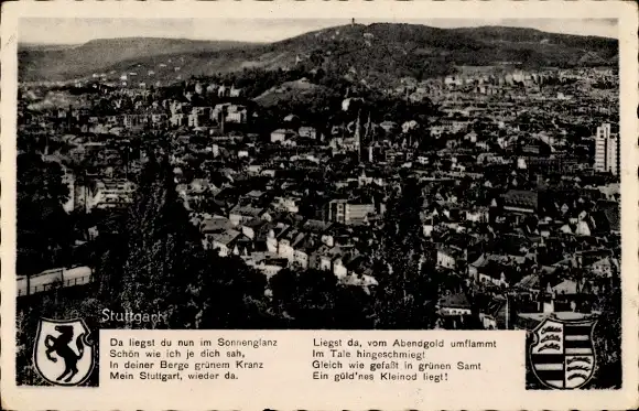 Ak Stuttgart in Württemberg, Wappen, Gedicht, Panorama