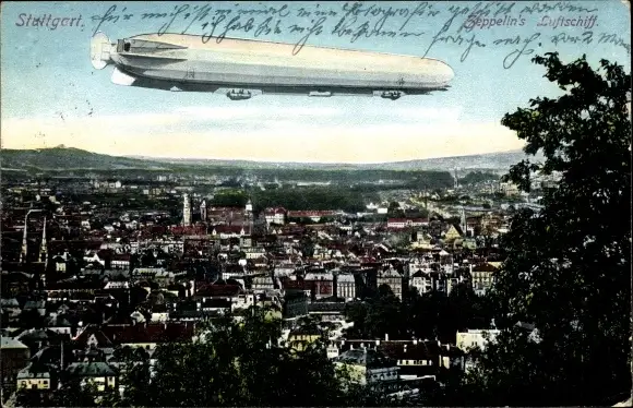 Ak Stuttgart in Württemberg, Zeppelins Luftschiff über der Stadt