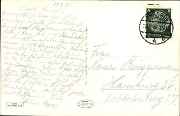 Zustand, siehe Scan, gelaufen, 1935 - ca 14 cm X 9 cm