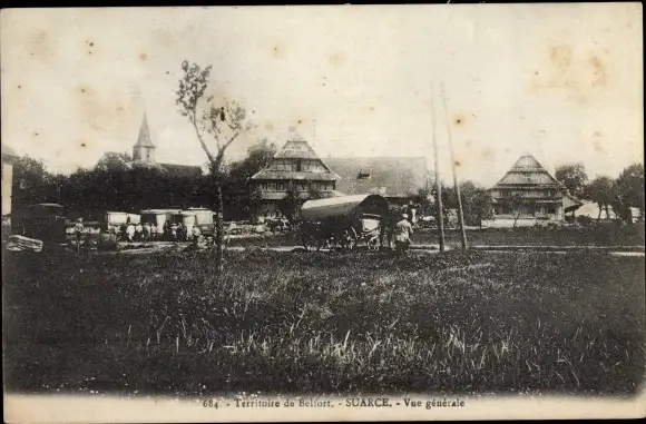 Ak Suarce Territoire de Belfort, Vue générale, Häuser, Kirchturn