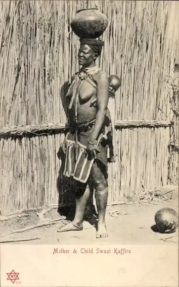 Ak Südafrika, Mutter mit Kind Swazi Kaffirs