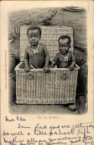 Ak Südafrika, Zwei Jungen in einem Weidenkorb
