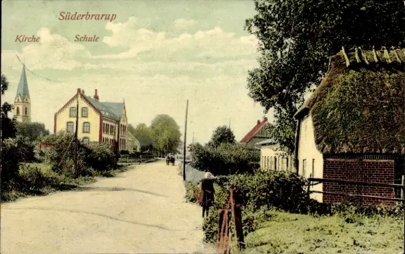 Ak Süderbrarup in Angeln, Straßenpartie, Kirche, Schule