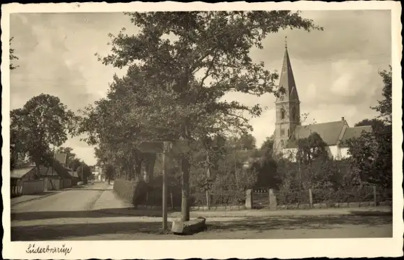Ak Süderbrarup in Schleswig Holstein, Straßenpartie, Kirche