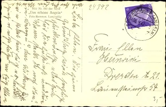Zustand, siehe Scan, gelaufen, 1942- Serie: Das Schöne Angeln, Nr 123 - ca 14 cm X 9 cm