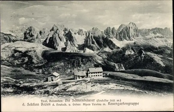 Ak Südtirol, Dolomiten, Schlernhäuser mit Rosengartengruppe