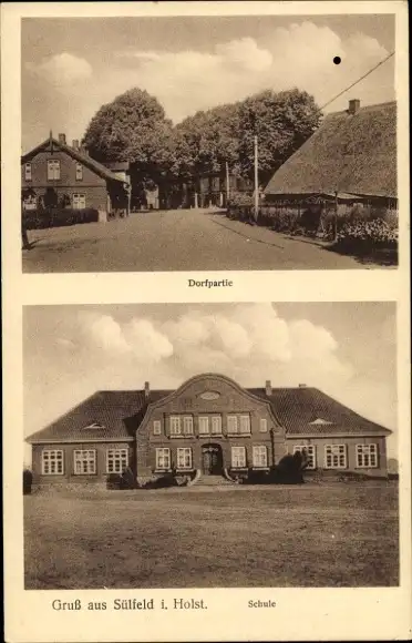 Ak Sülfeld in Holstein, Dorfpartie, Schule