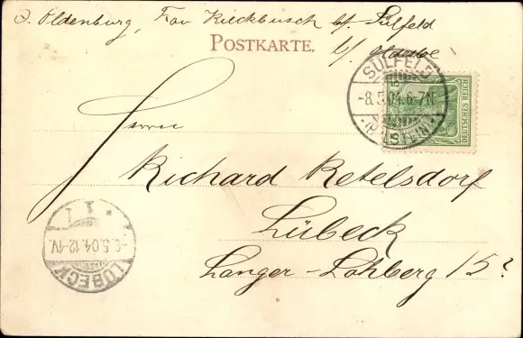 Zustand, siehe Scan, gelaufen, 1904- Inh. H. Kieckbusch - ca 14 cm X 9 cm