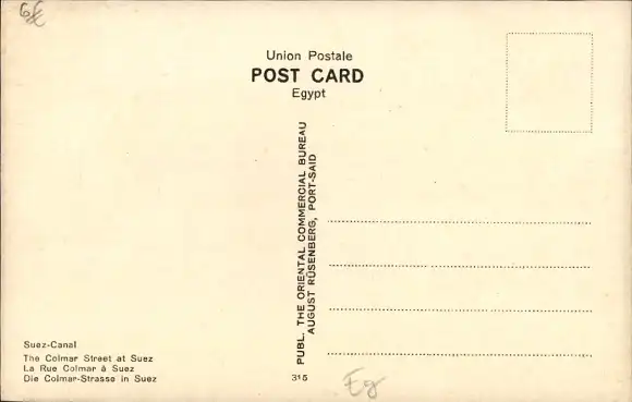 Ak Suez Ägypten, Suez-Canal, The Colmar Street