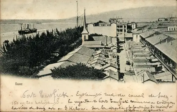 Ak Suez Ägypten, Teilansicht, Dampfer