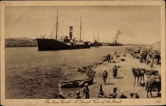 Ak Suez Canal Ägypten, A Typical View of the Canal, Steamers