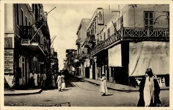 Ak Suez Egypt, Blick in die Kolmar Straße