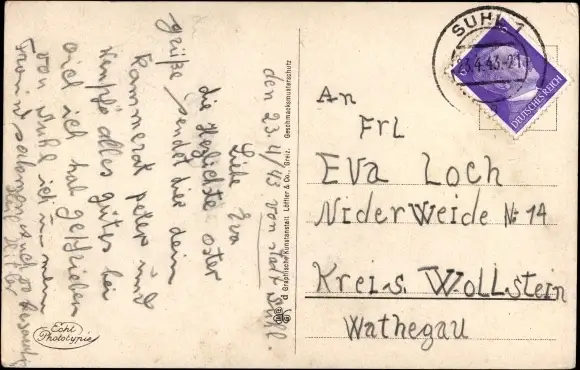 Zustand, siehe Scan, gelaufen, 1943 - ca 15 cm X 9 cm