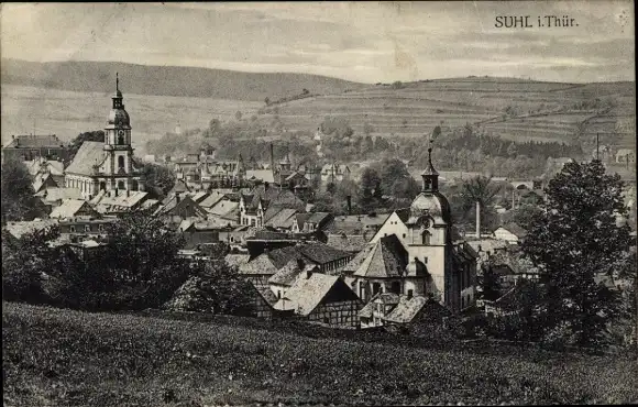 Ak Suhl in Thüringen, Teilansicht, Kirchen