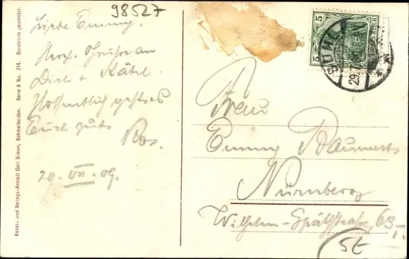 Zustand, siehe Scan, gelaufen, 1909 - ca 14 cm X 9 cm
