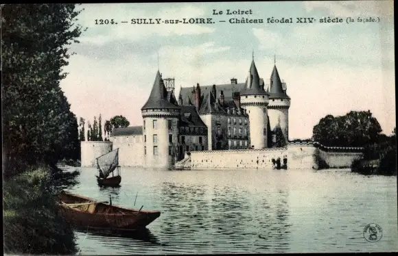 Ak Sully sur Loire Loiret, Chateau feodal XIVe siecle