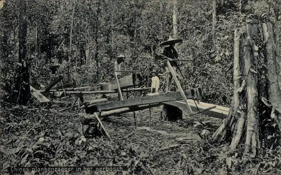 Ak Sumatra Indonesien, Männer zersägen Stämme, Forstwirtschaft