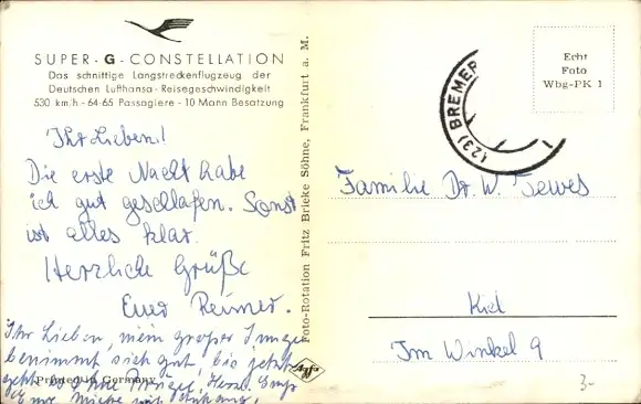Ak Super G Constellation, Passagierflugzeug, Lufthansa