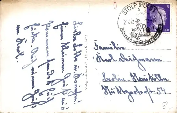 Zustand, siehe Scan, gelaufen, 1942 - ca 14 cm X 9 cm