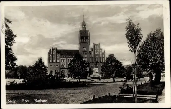 Ak Słupsk Stolp Pommern, Rathaus, Denkmal
