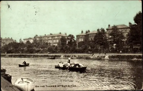Ak Surbiton Kingston London England, On the Thames, Ruderpartie