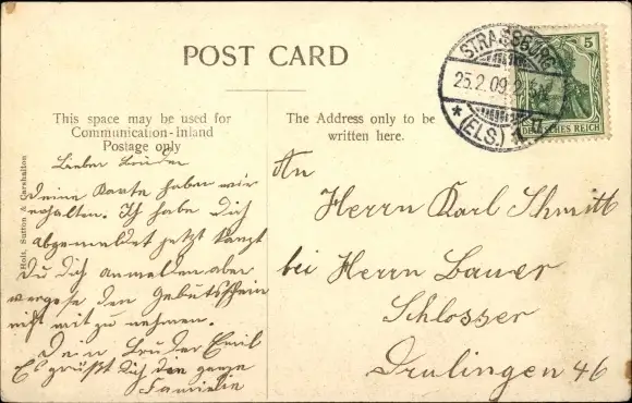 Zustand, siehe Scan, gelaufen, 1909 - ca 14 cm X 9 cm