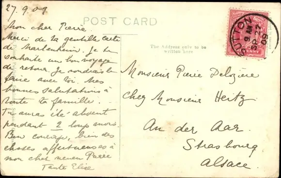 Zustand, siehe Scan, gelaufen, 1909 - ca 14 cm X 9 cm