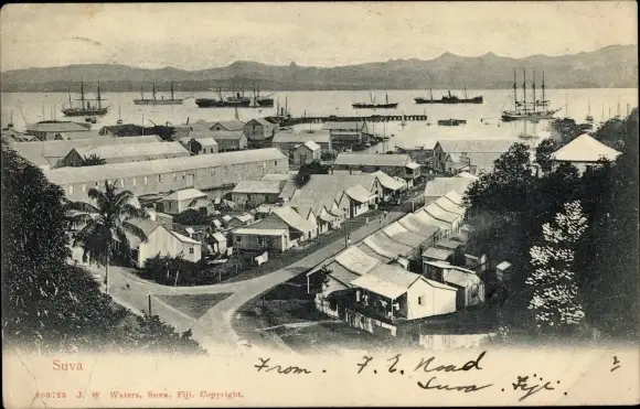 Ak Suva Fidschi, Blick auf den Ort