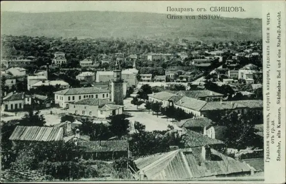 Ak Svištov Swischtow Bulgarien, Stadtuhr, Alte Kasernen, Städtisches Bad