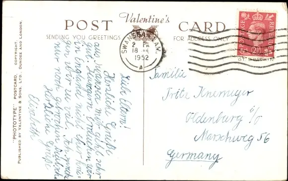 Zustand, siehe Scan, gelaufen, 1952 - ca 14 cm X 9 cm