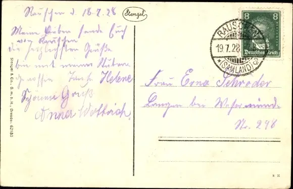 Zustand, siehe Scan, gelaufen, 1928- Stengel 62180 - ca 14 cm X 9 cm