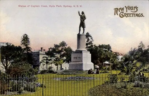 Ak Sydney Australien, Statue von Captain Cook, Hyde Park