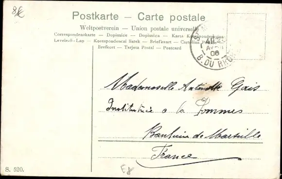 Zustand, siehe Scan, gelaufen, 1906 - ca 14 cm X 9 cm