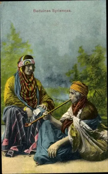 Ak Syrien, Beduinen in Tracht, Pfeife