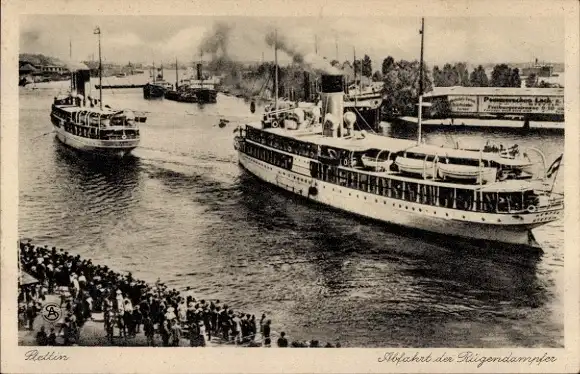 Ak Szczecin Stettin Pommern, Abfahrt der Rügendampfer