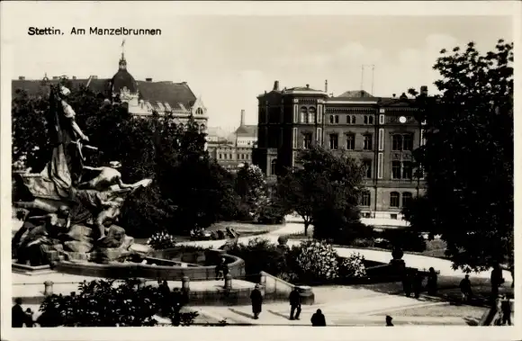 Ak Szczecin Stettin Pommern, Am Manzelbrunnen