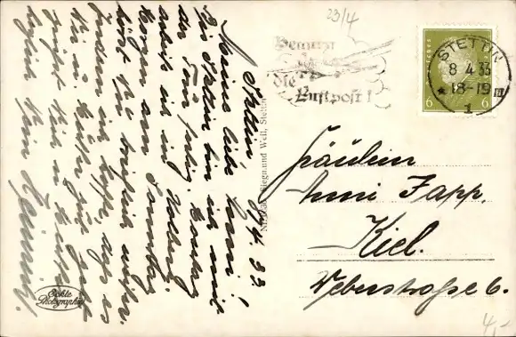Zustand, siehe Scan, gelaufen, 1933 - ca 14 cm X 9 cm