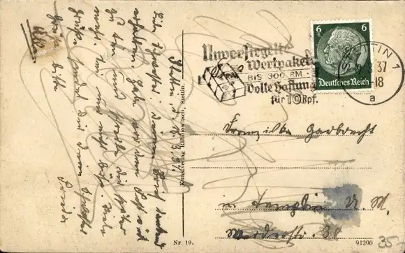 Zustand, siehe Scan, gelaufen, 1937 - ca 14 cm X 9 cm