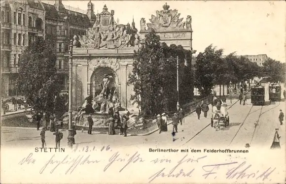 Ak Szczecin Stettin Pommern, Berliner Tor, Felderhoffbrunnen