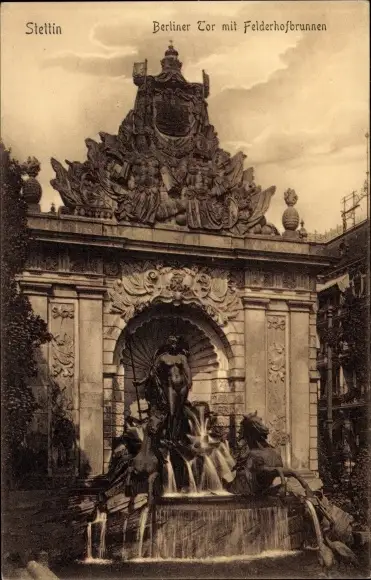 Ak Szczecin Stettin Pommern, Berliner Tor mit Felderhofbrunnen