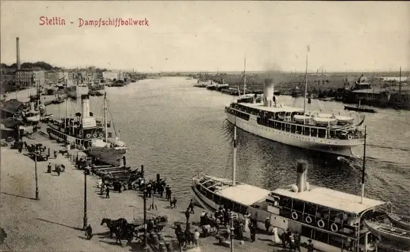Ak Szczecin Stettin Pommern, Dampfschiffbolwerk, Dampfer in Fahrt