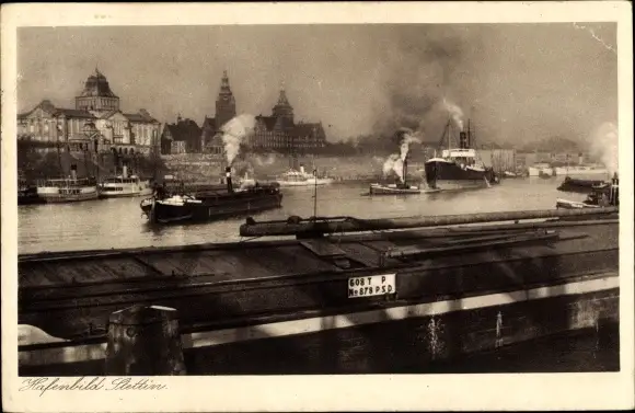 Ak Szczecin Stettin Pommern, Hafenpartie, Dampfer, Frachtschiff