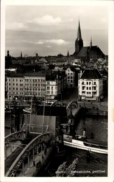 Ak Szczecin Stettin Pommern, Hansa Brücke, geöffnet