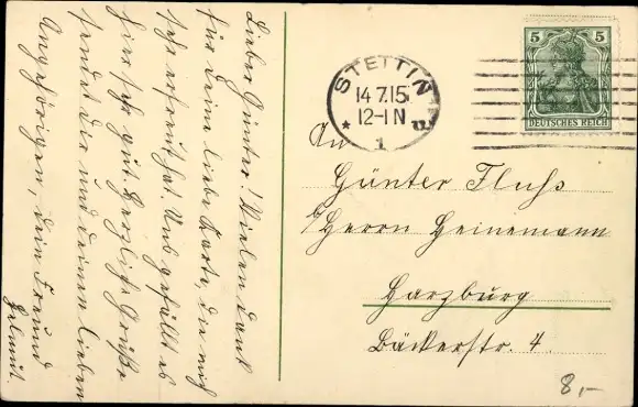 Zustand, siehe Scan, gelaufen, 1915 - ca 14 cm X 9 cm