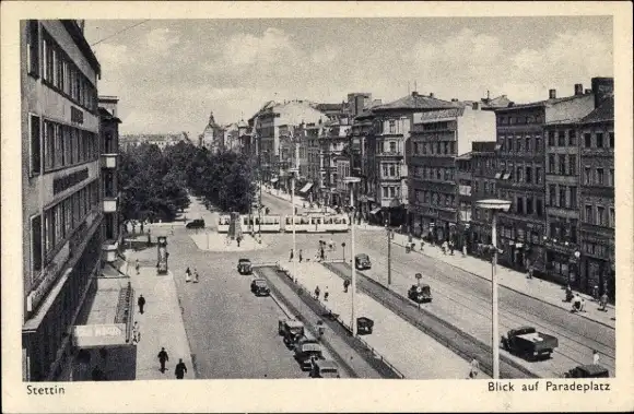 Ak Szczecin Stettin Pommern, Paradeplatz, Straßenbahn