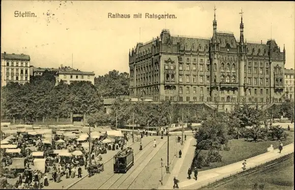 Ak Szczecin Stettin Pommern, Rathaus m. Ratsgarten