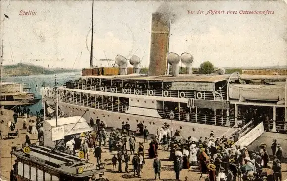Ak Szczecin Stettin Pommern, Vor der Abfahrt eines Ostseedampfers