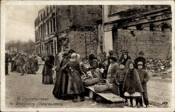 Ak Szczytno Ortelsburg Ostpreußen, Obsthändlerinnen, Markt, Ostpreußenhilfe 1. WK