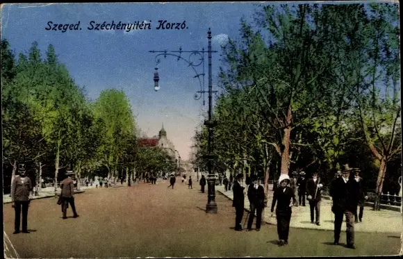 Ak Szeged Segedin Ungarn, Straßenpartie, Szechenyiteri Korzo