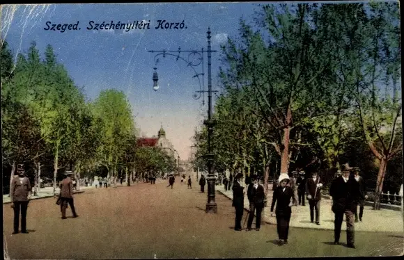 Ak Szeged Segedin Ungarn, Straßenpartie, Szechenyiteri Korzo